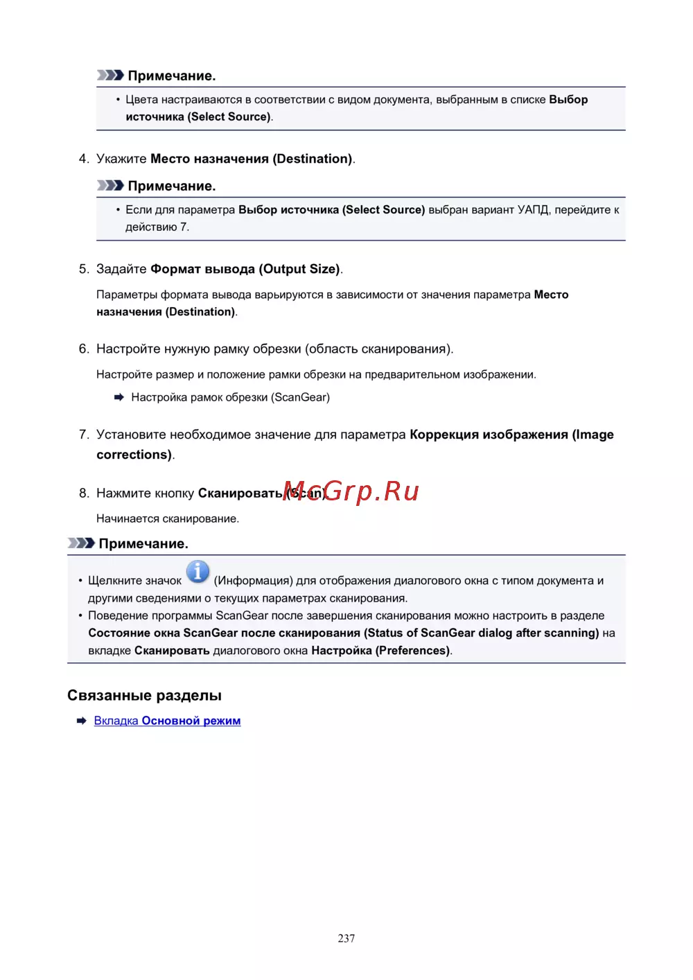 • Поведение программы ScanGear после завершения сканирования можно настроить в разделе