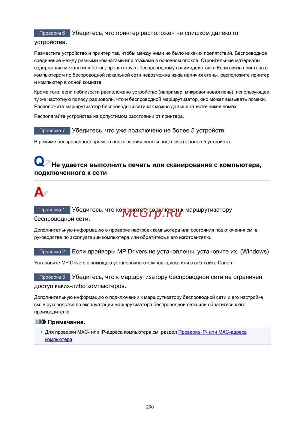 • Для проверки MAC- или IP-адреса компьютера см. раздел Проверка IP- или MAC-адреса