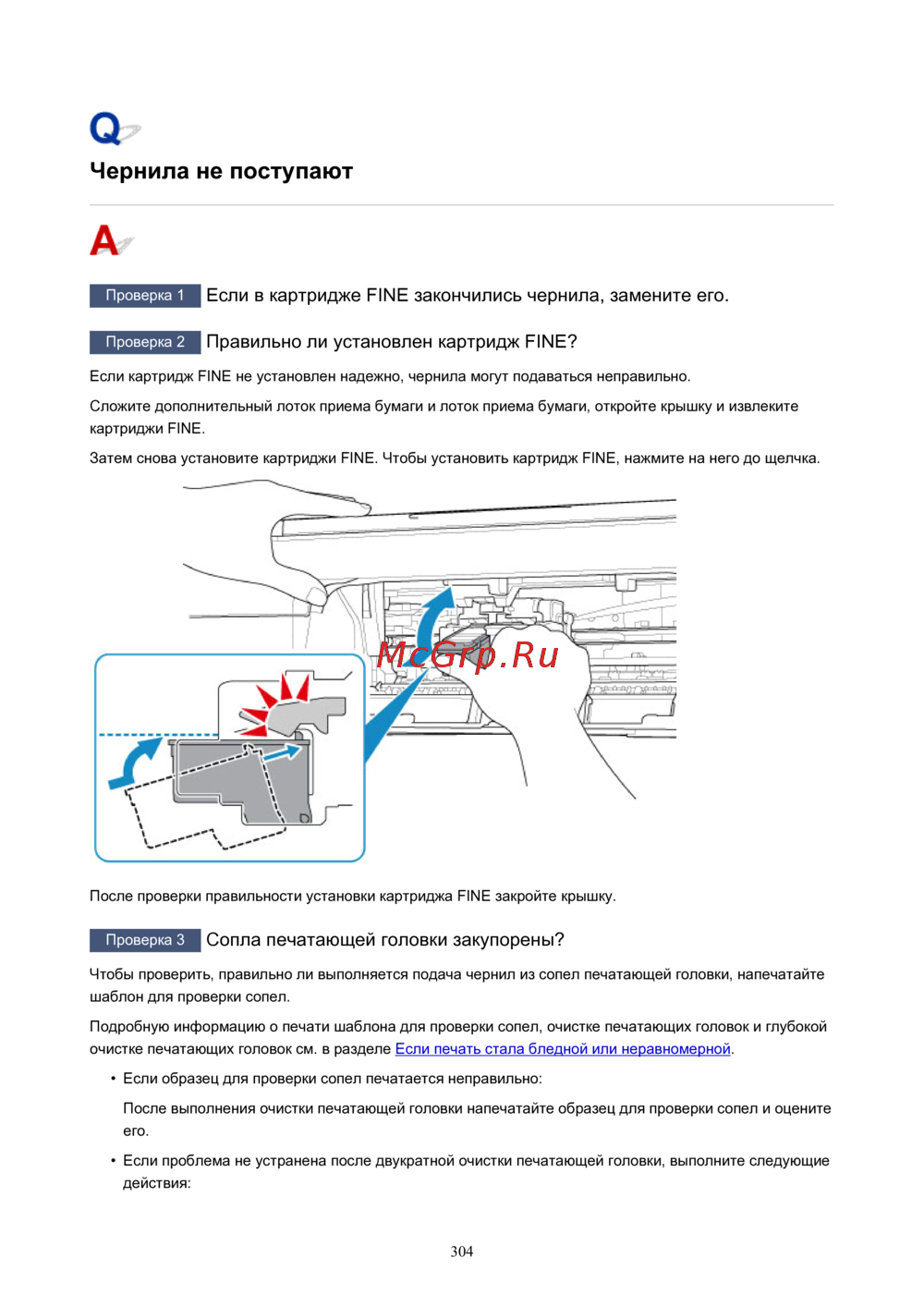 Canon PIXMA TS3150 [304/378] Чернила не поступают