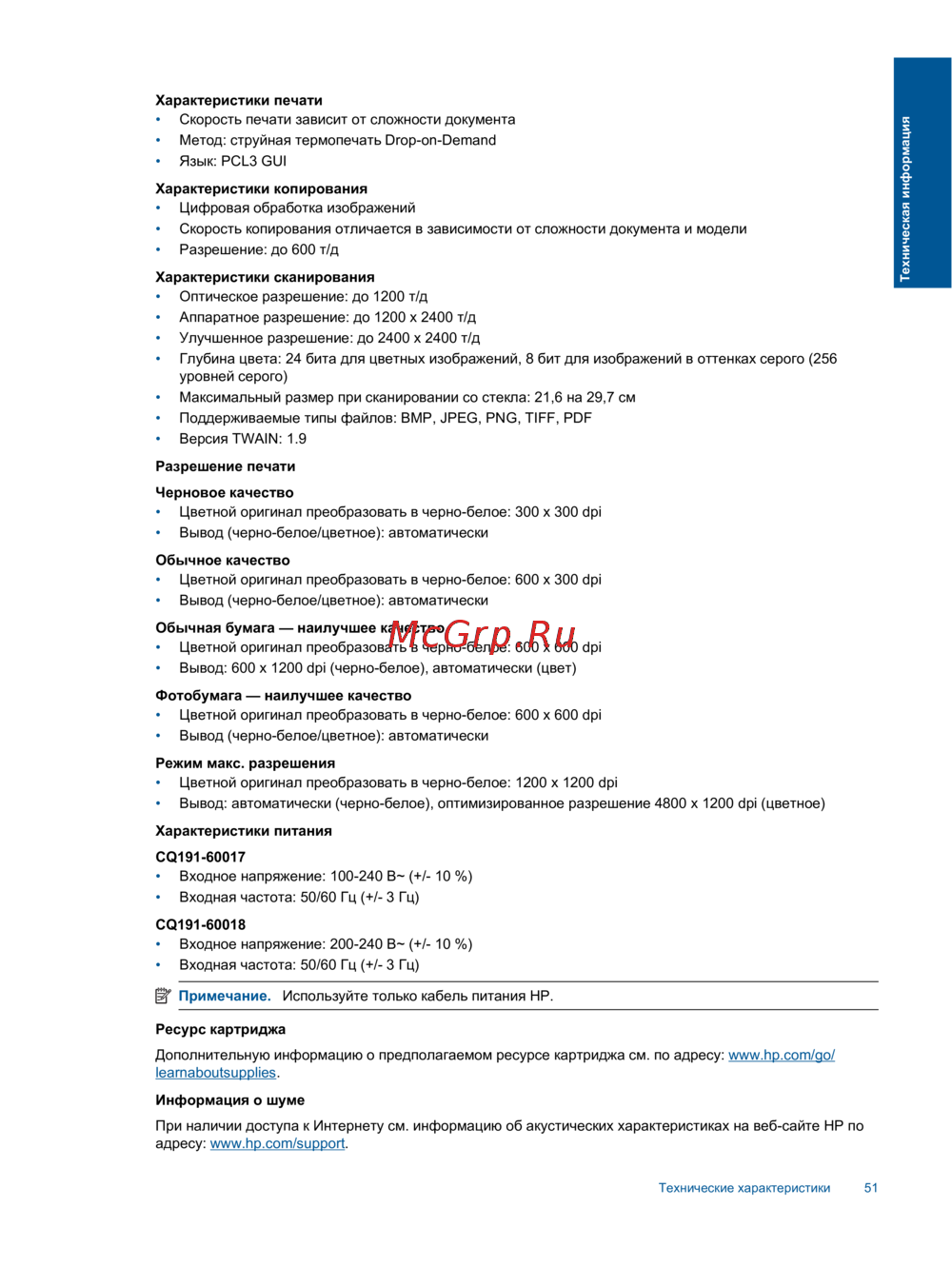 HP Deskjet 3070А B611 — основные характеристики печати, копирования и сканирования устройств [53/62]