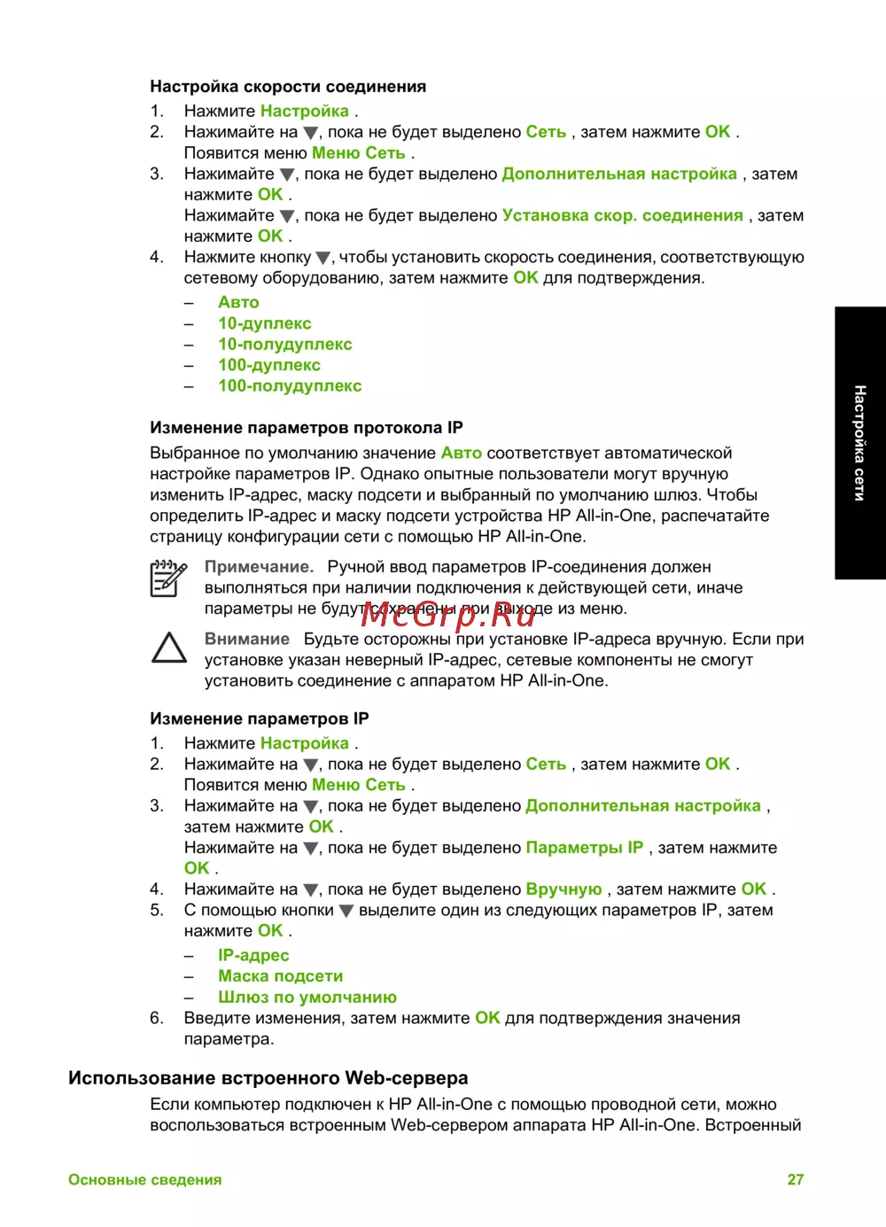 - Настройка сетевых параметров p.27