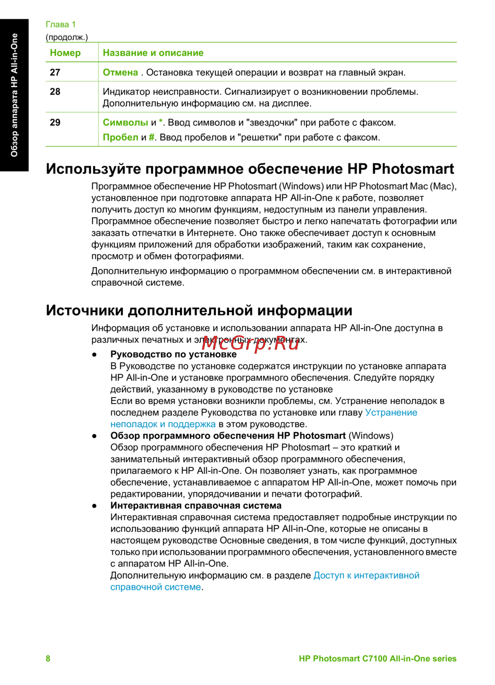 прилагаемого к HP All-in-One. Он позволяет узнать, как программное