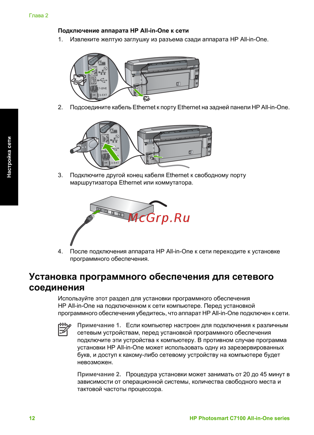 - Переход с usb соединения аппарата hp all in one на сетевое соединение p.26