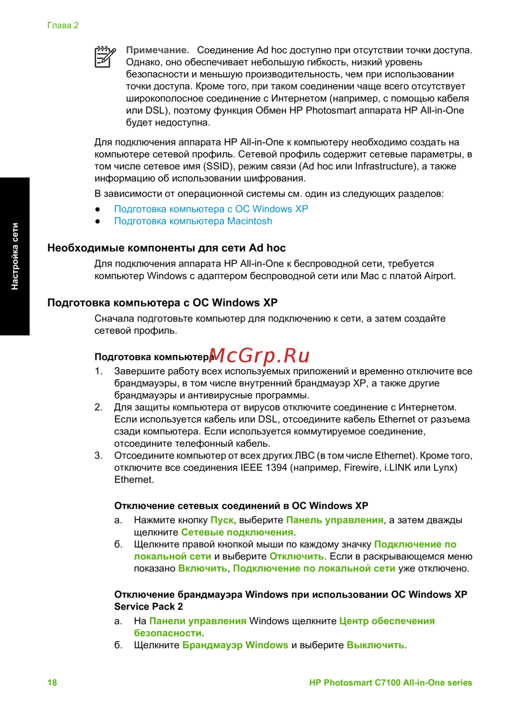 HP Photosmart C7183 [21/133] Подготовка компьютера с ос windows xp