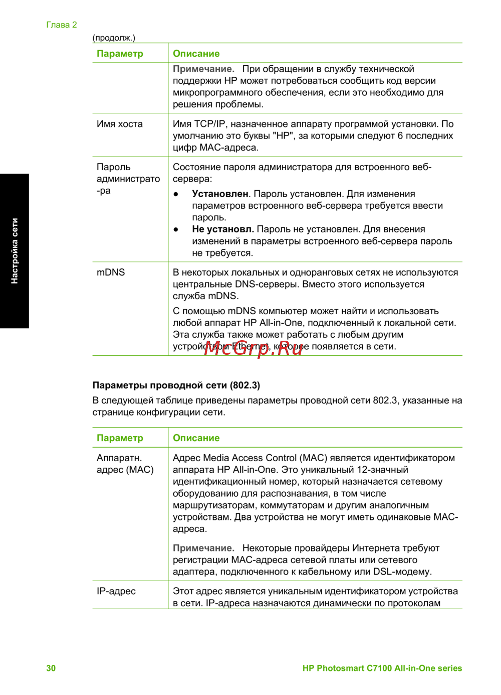HP Photosmart C7183 [33/133] Параметры проводной сети 802