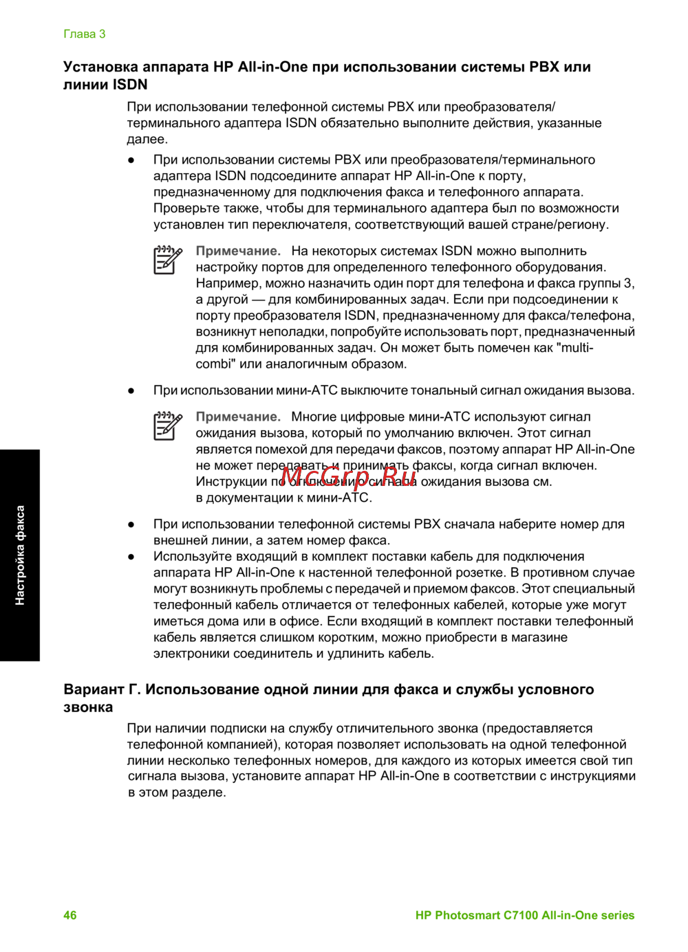 Установка аппарата HP All-in-One при использовании системы PBX или