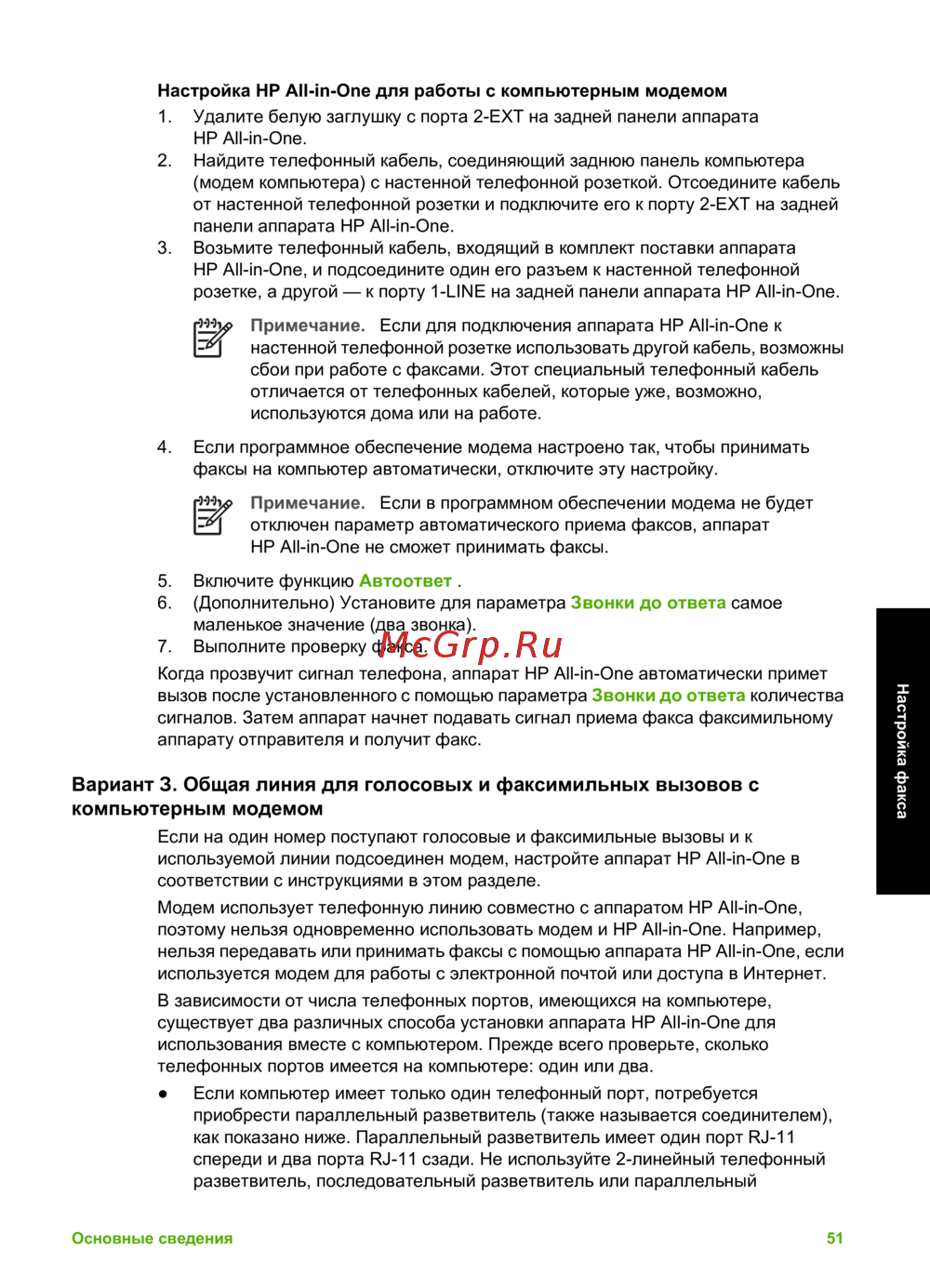 поэтому нельзя одновременно использовать модем и HP All-in-One. Например,