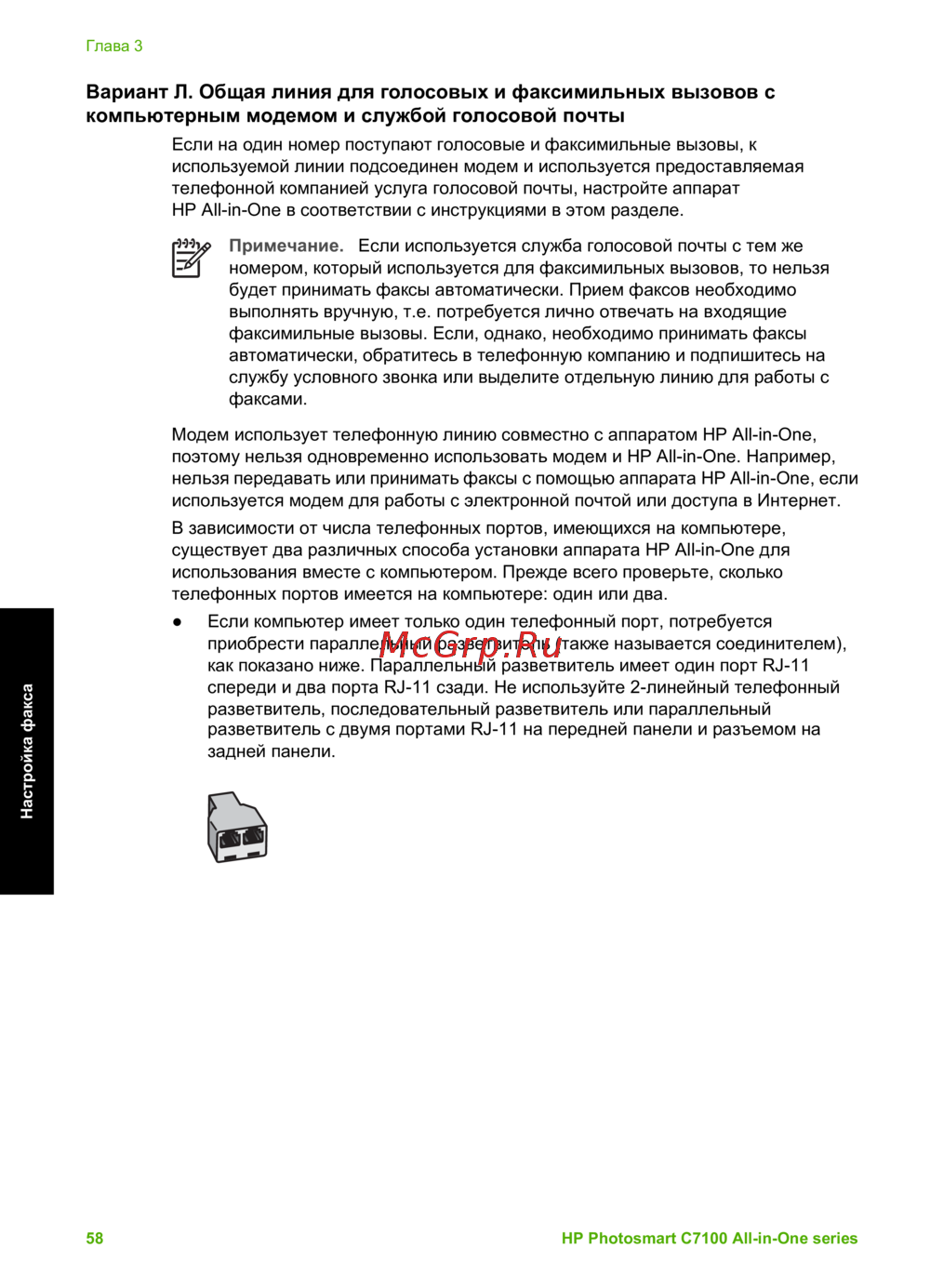 HP Photosmart C7183 [61/133] Вариант л общая линия для голосовых и факсимильных вызовов с компьютерным модемом и службой голосовой почты
