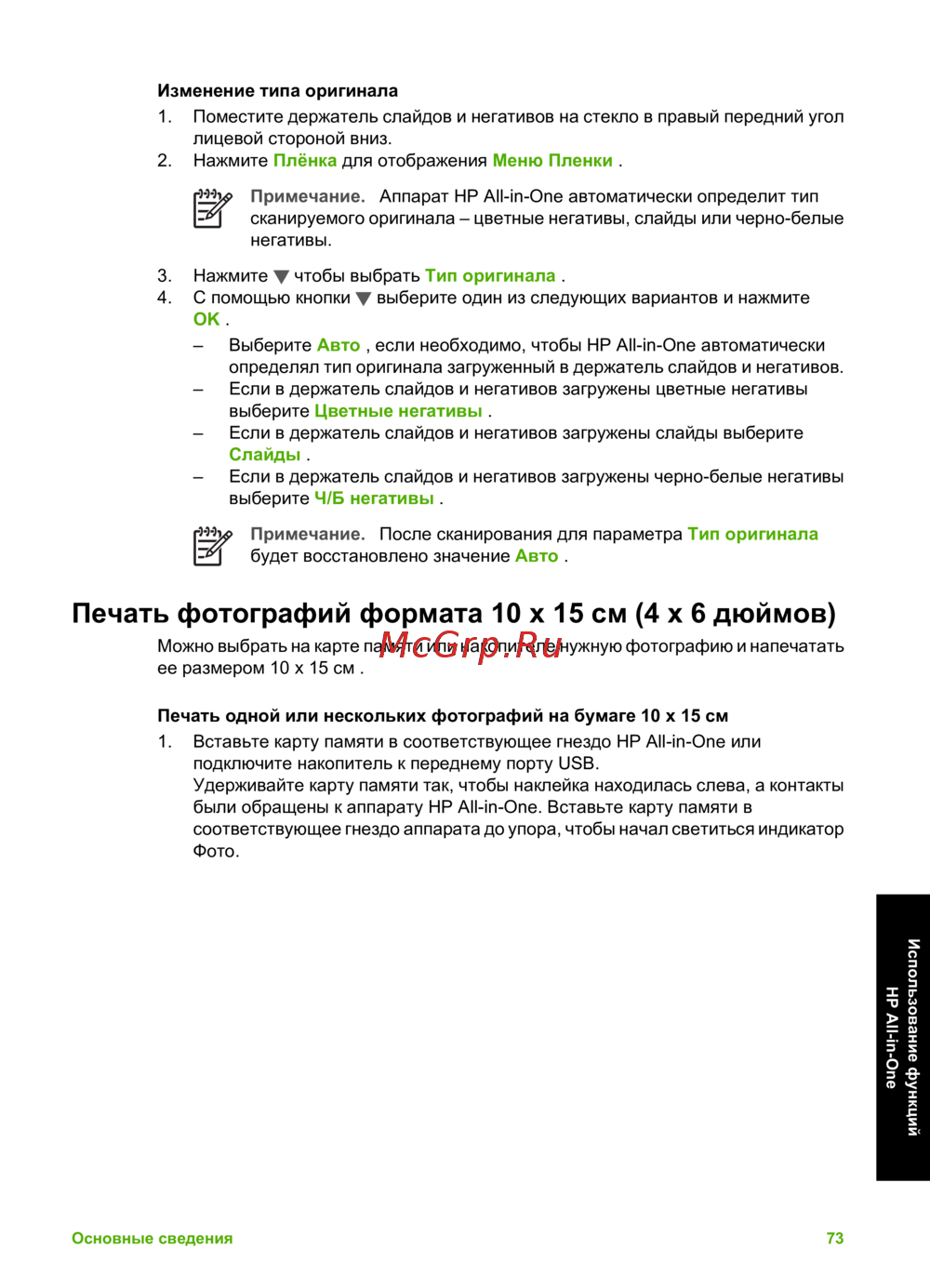 были обращены к аппарату HP All-in-One. Вставьте карту памяти в