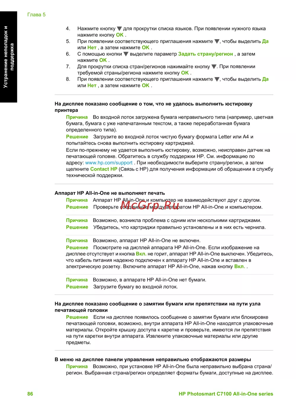 Причина Возможно, при установке HP All-in-One была неправильно выбрана страна/