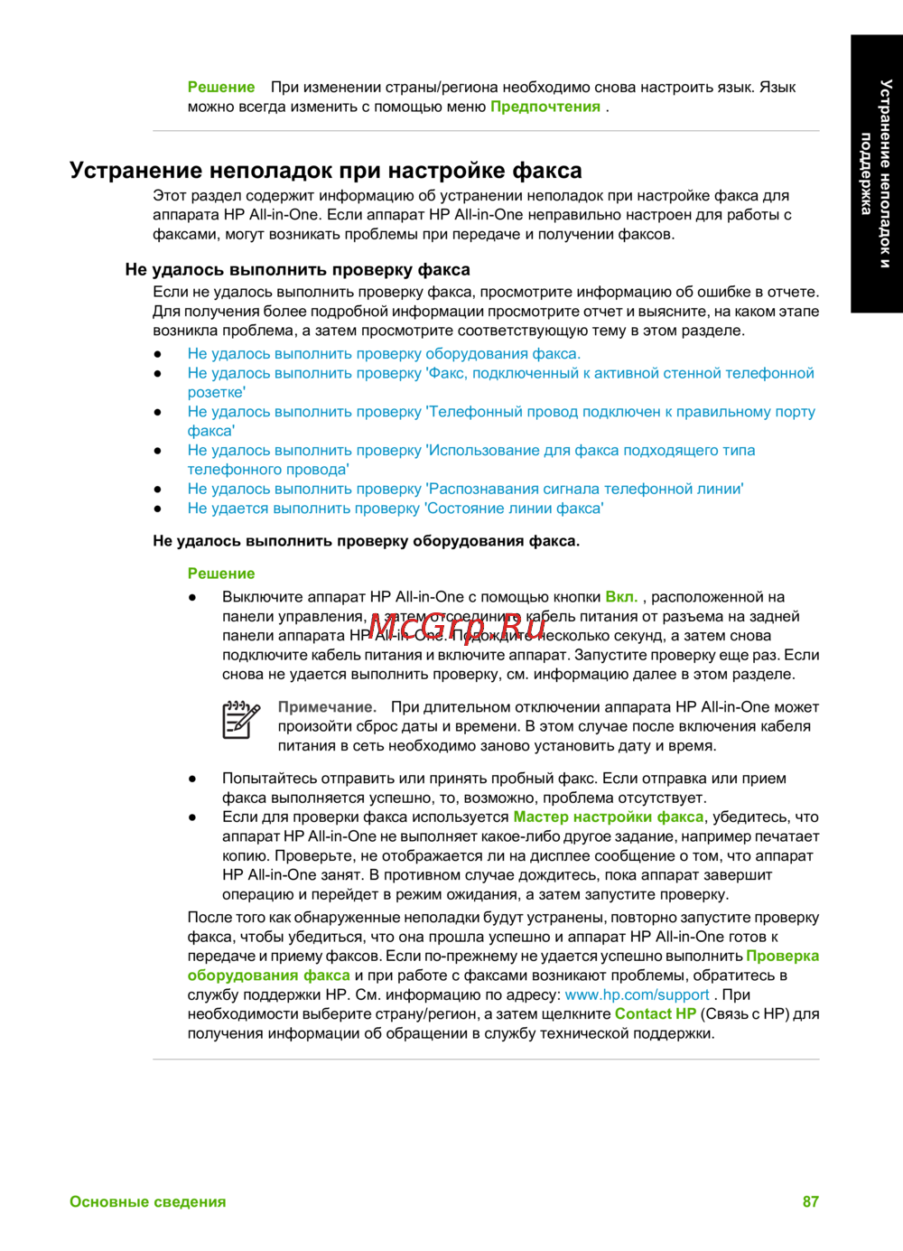 - Изменение параметров аппарата hp all in one для приема факсов p.63
