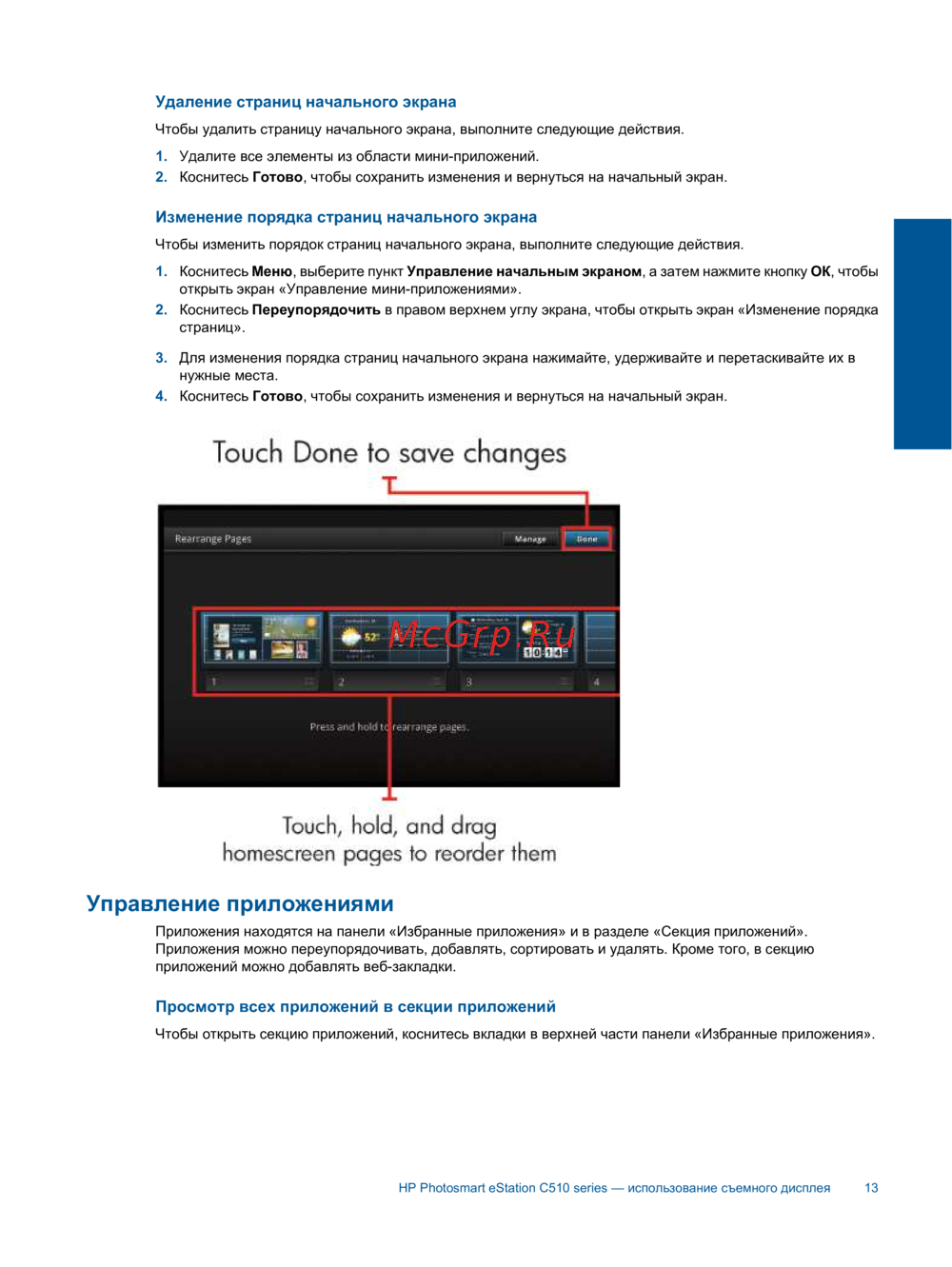 - Управление начальным экраном p.11