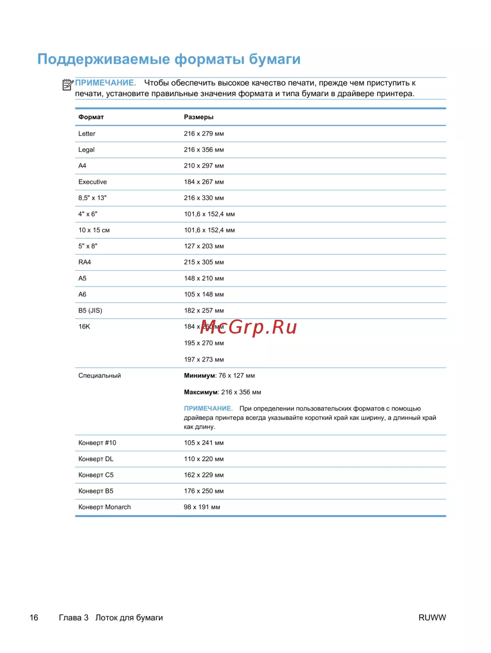 - Ruww поддерживаемые форматы бумаги 17 p.27