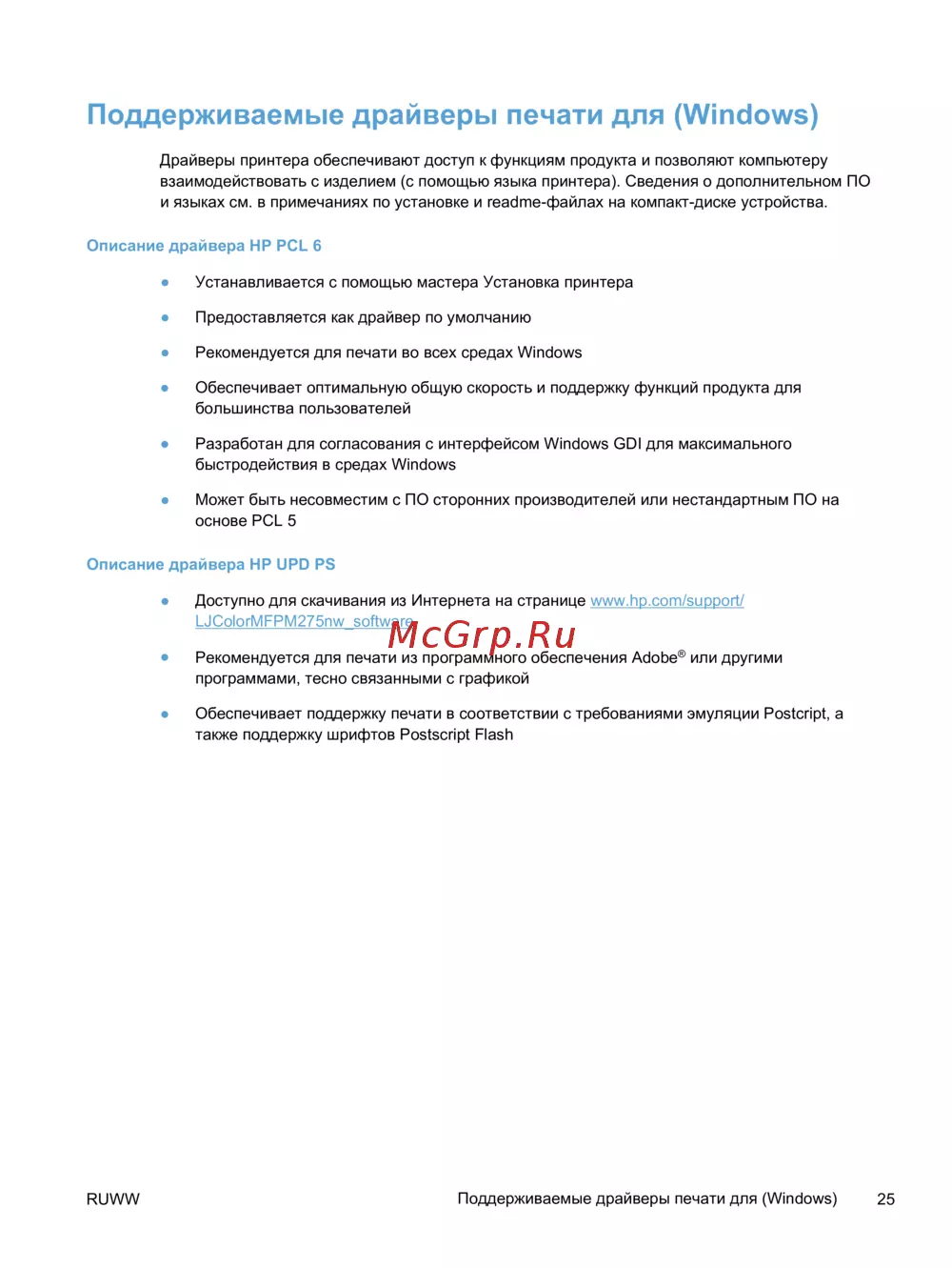 HP TopShot LaserJet Pro M275 [35/216] Поддерживаемые драйверы печати для windows