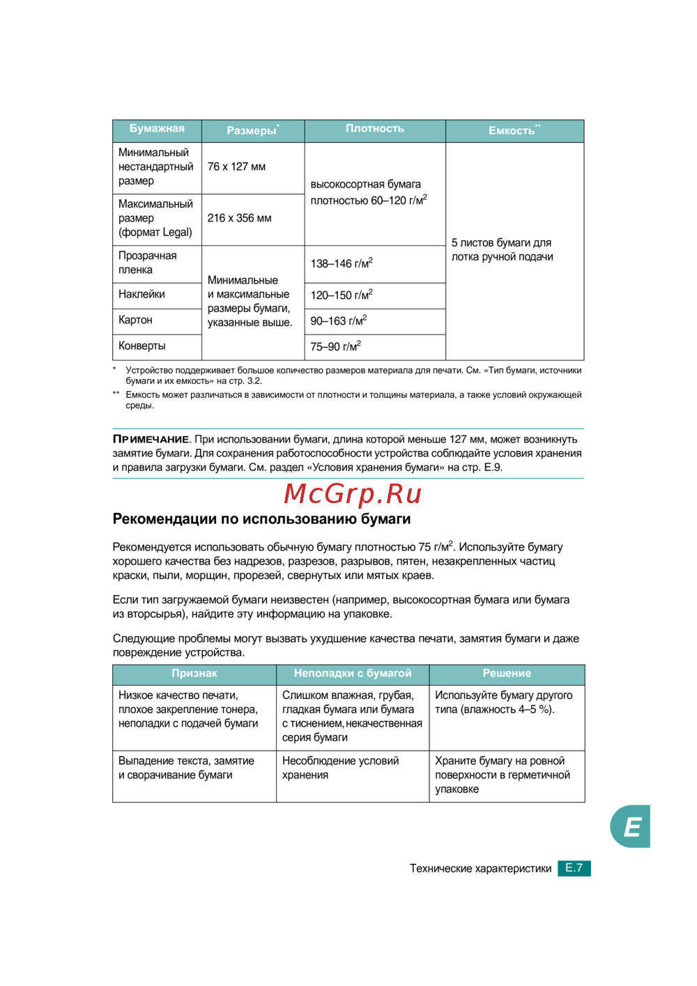 - Рекомендации по использованию бумаги p.272