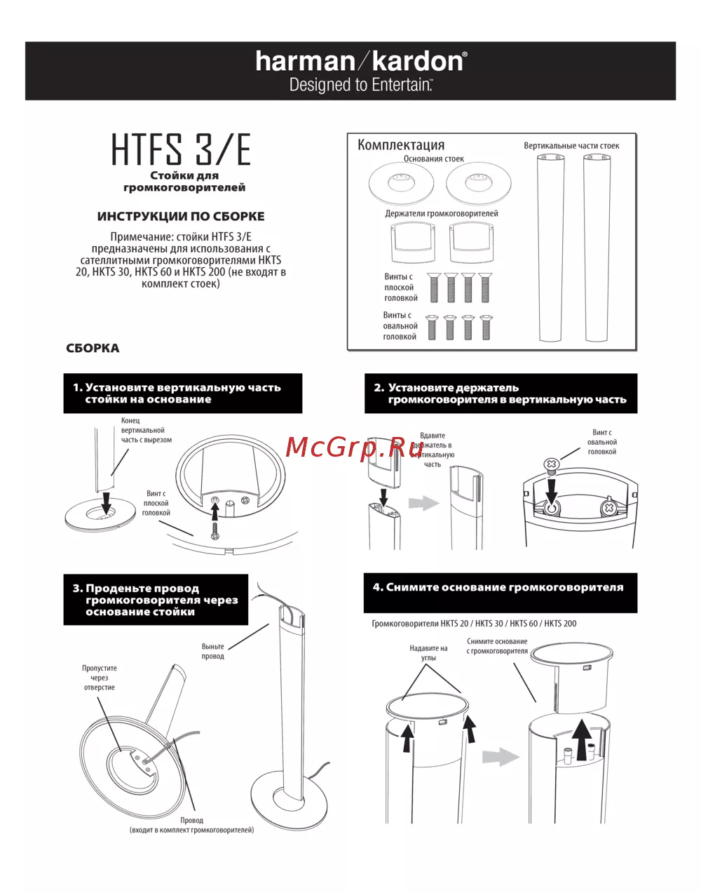 - Примечание стойки htfs 3 e предназначены для использования с сателлитными громкоговорителями hkts 20 hkts 30 hkts 60 и hkts 200 не входят в комплект стоек p.2
