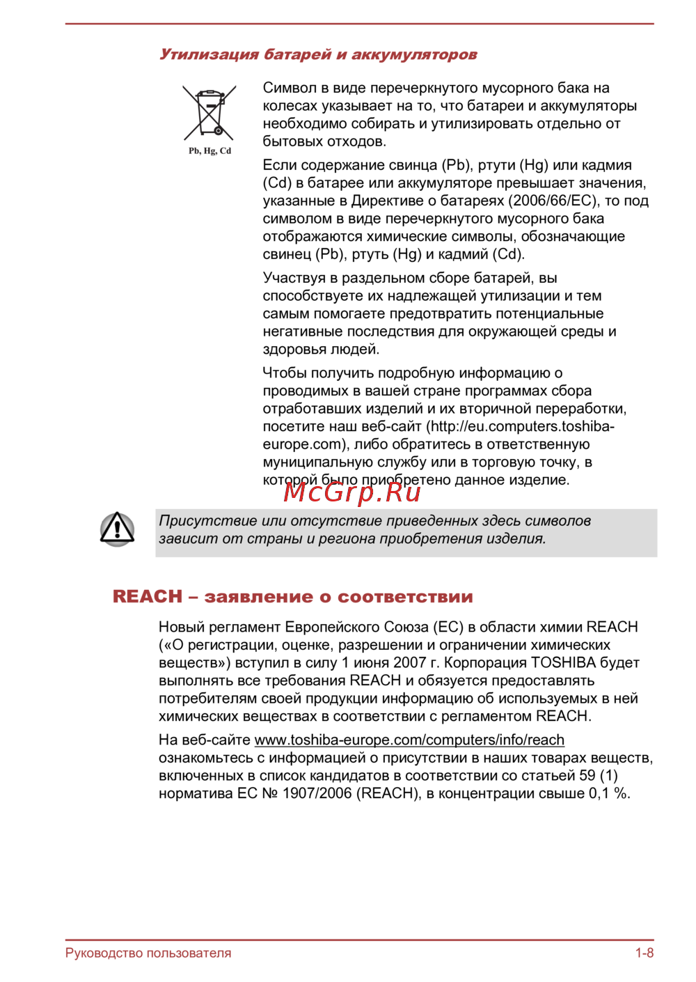 Toshiba Satellite Pro L870 (D) — утилизация батарей и аккумуляторов: важность раздельного сбора [11/177]