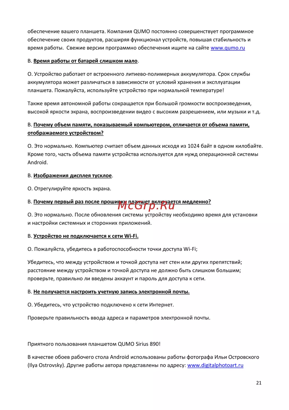 Qumo Sirius 890 Руководство по эксплуатации онлайн [21/21] 711937