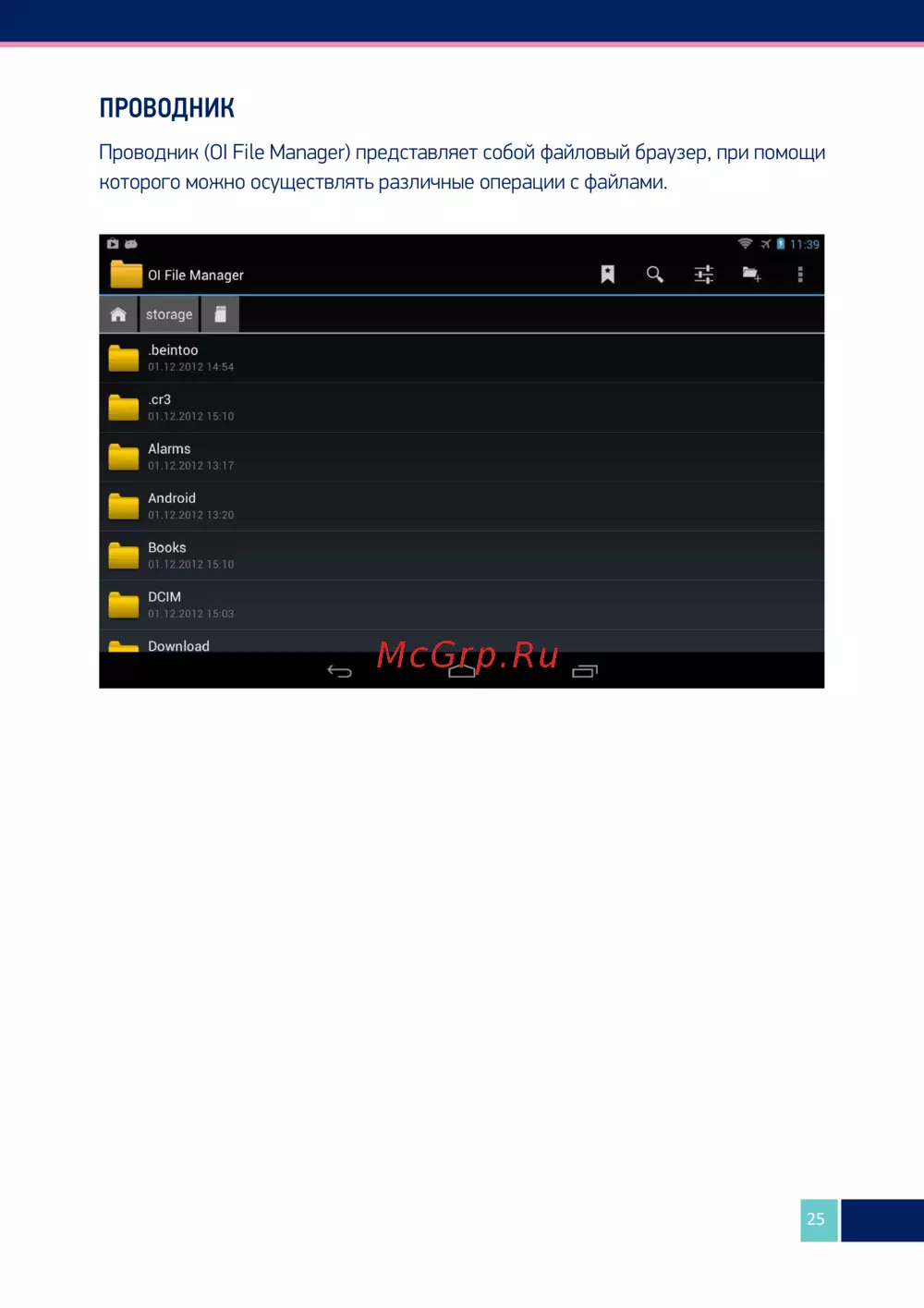 Проводник (OI File Manager) представляет собой файловый браузер, при помощи