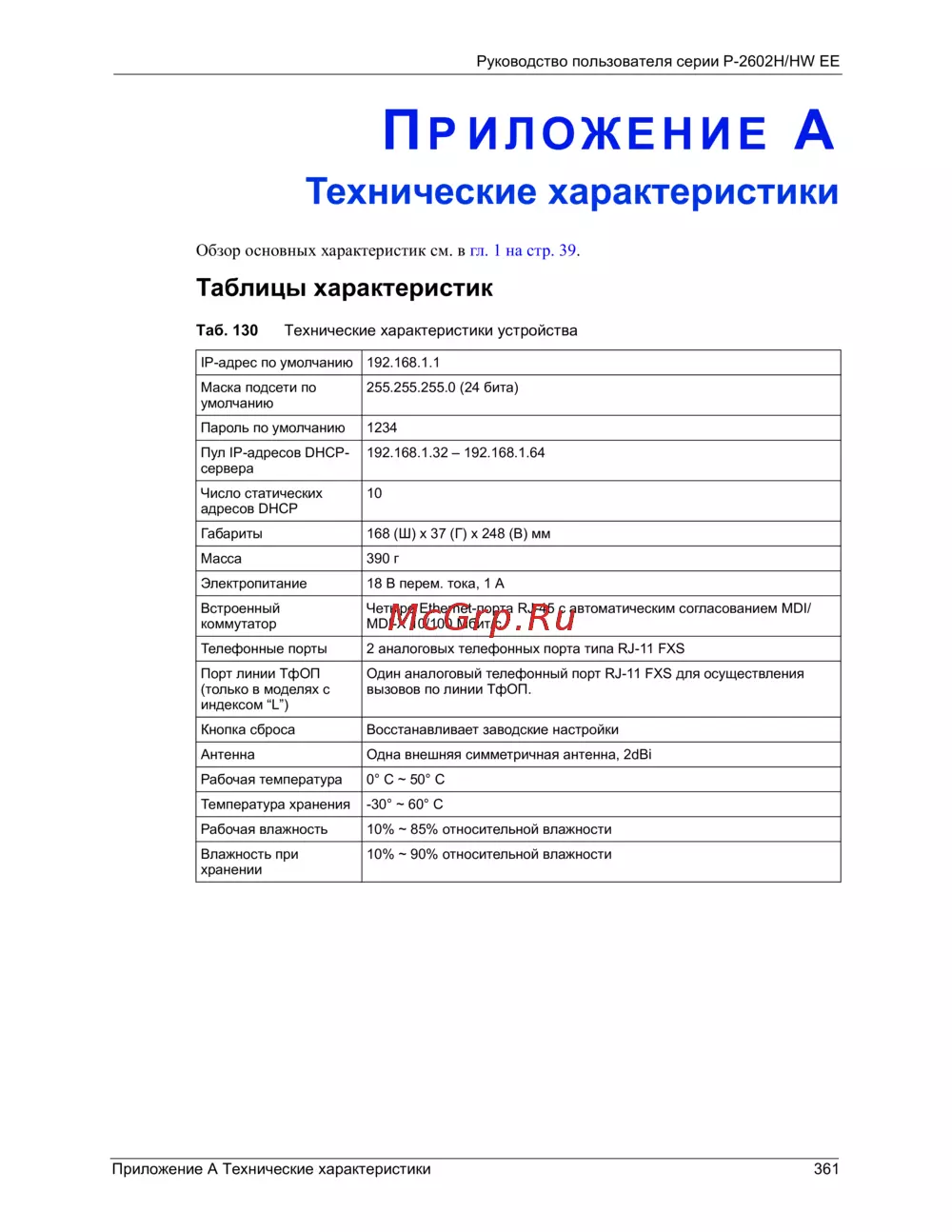 Zyxel P-2602H_P-2602HW [361/465] Технические характеристики