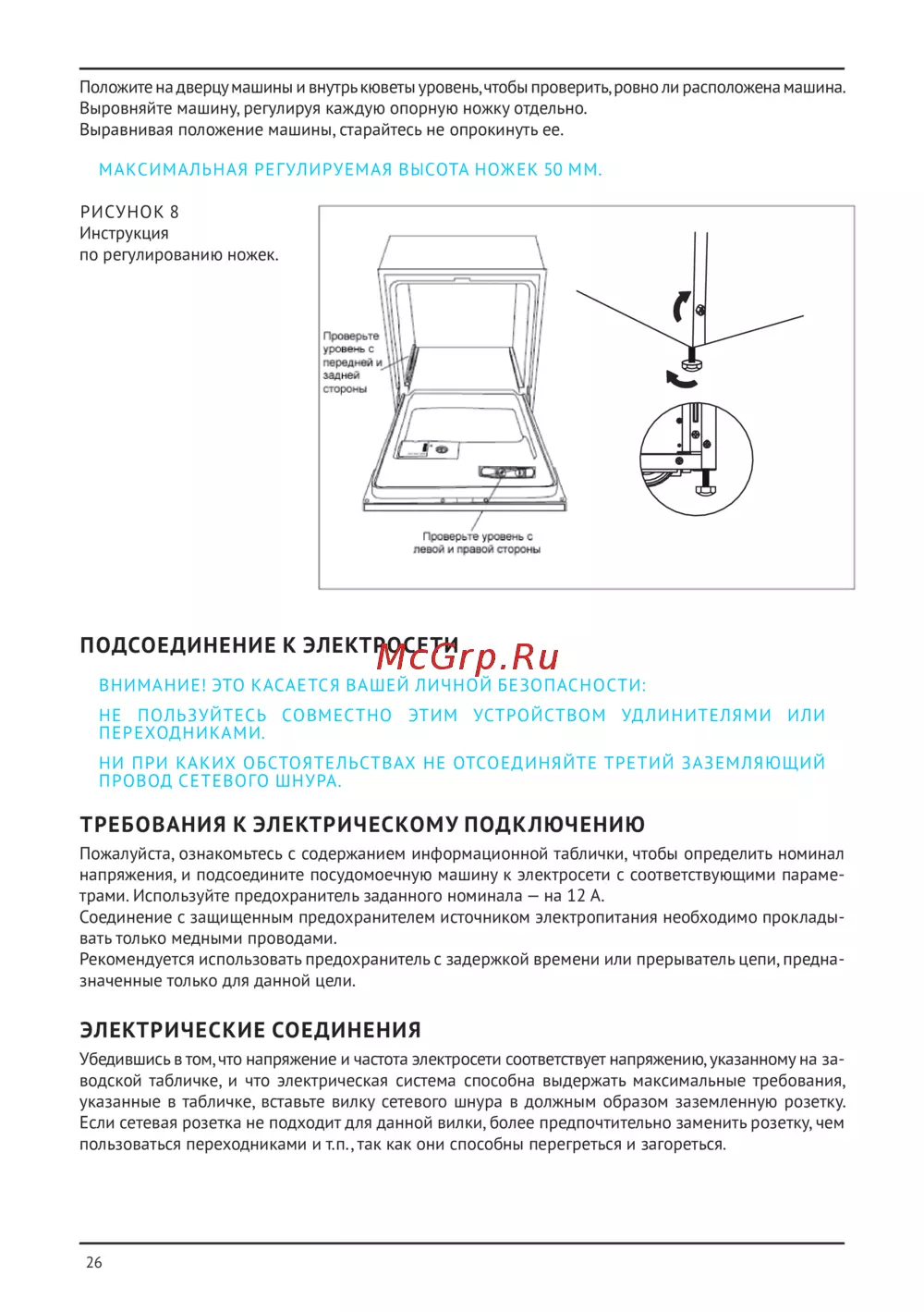 - Подсоединение к электросети p.26