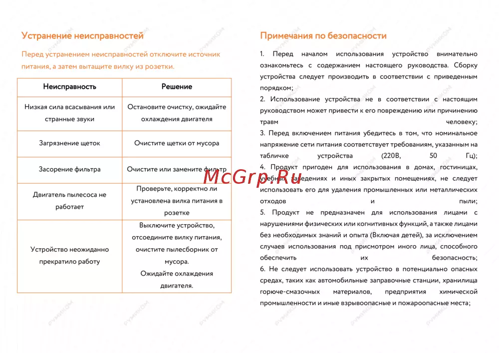 Xiaomi Deerma Vacuum Cleaner DX700S — устранение неисправностей и безопасность при использовании устройства [5/6]