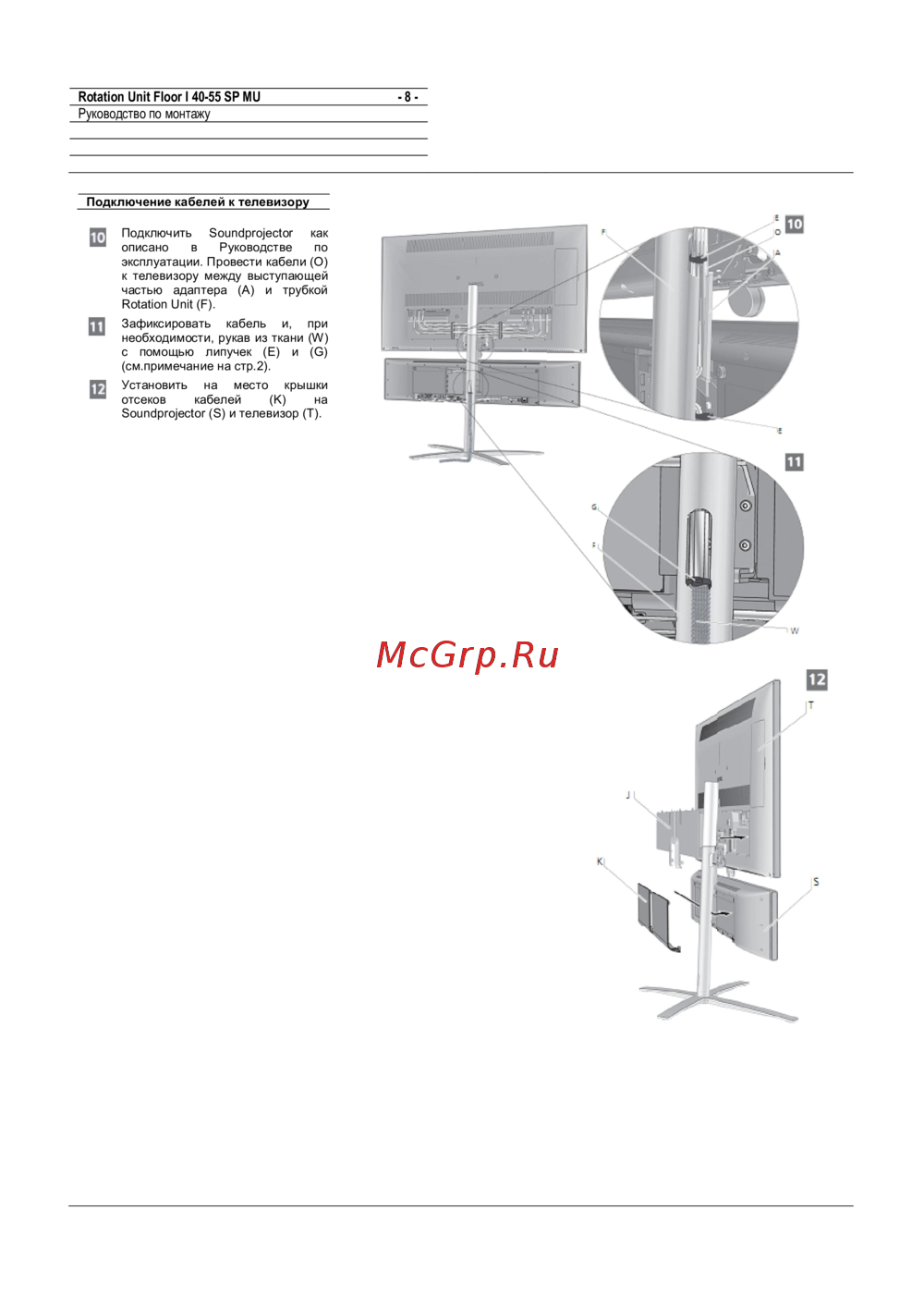 Loewe Rotation Unit Floor I 40-55 MU SP 71782B00 — руководство по монтажу и подключению кабелей к телевизору [8/8]