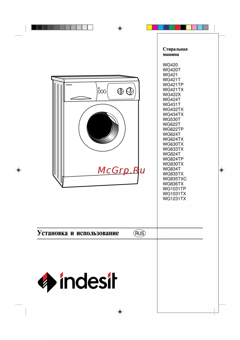 Indesit WG 835 TXC Руководство по эксплуатации онлайн