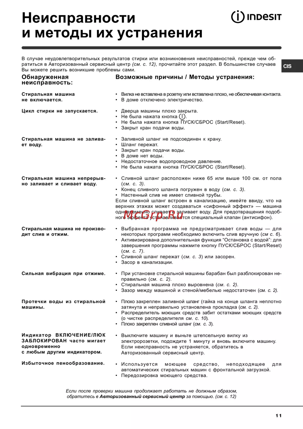 Indesit WISN 100 — решение неисправностей стиральной машины: советы и рекомендации [11/12]