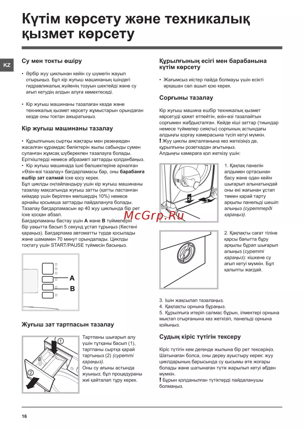 - Құрылғының есігі мен барабанына күтім көрсету p.16