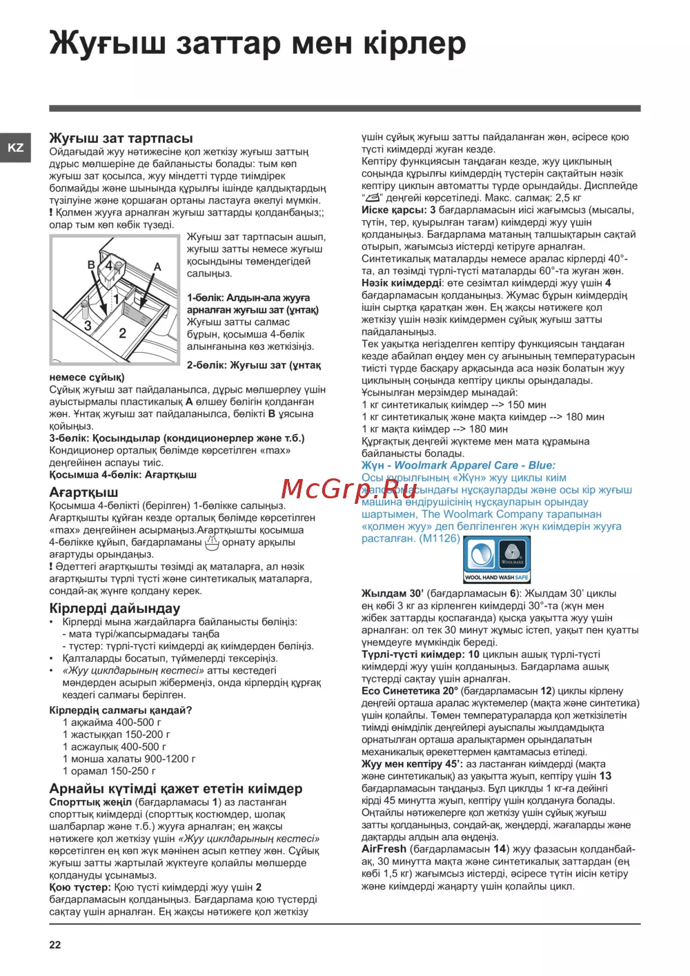 - Кір жуғыш машина сипаттамасы және жуу циклын бастау p.18