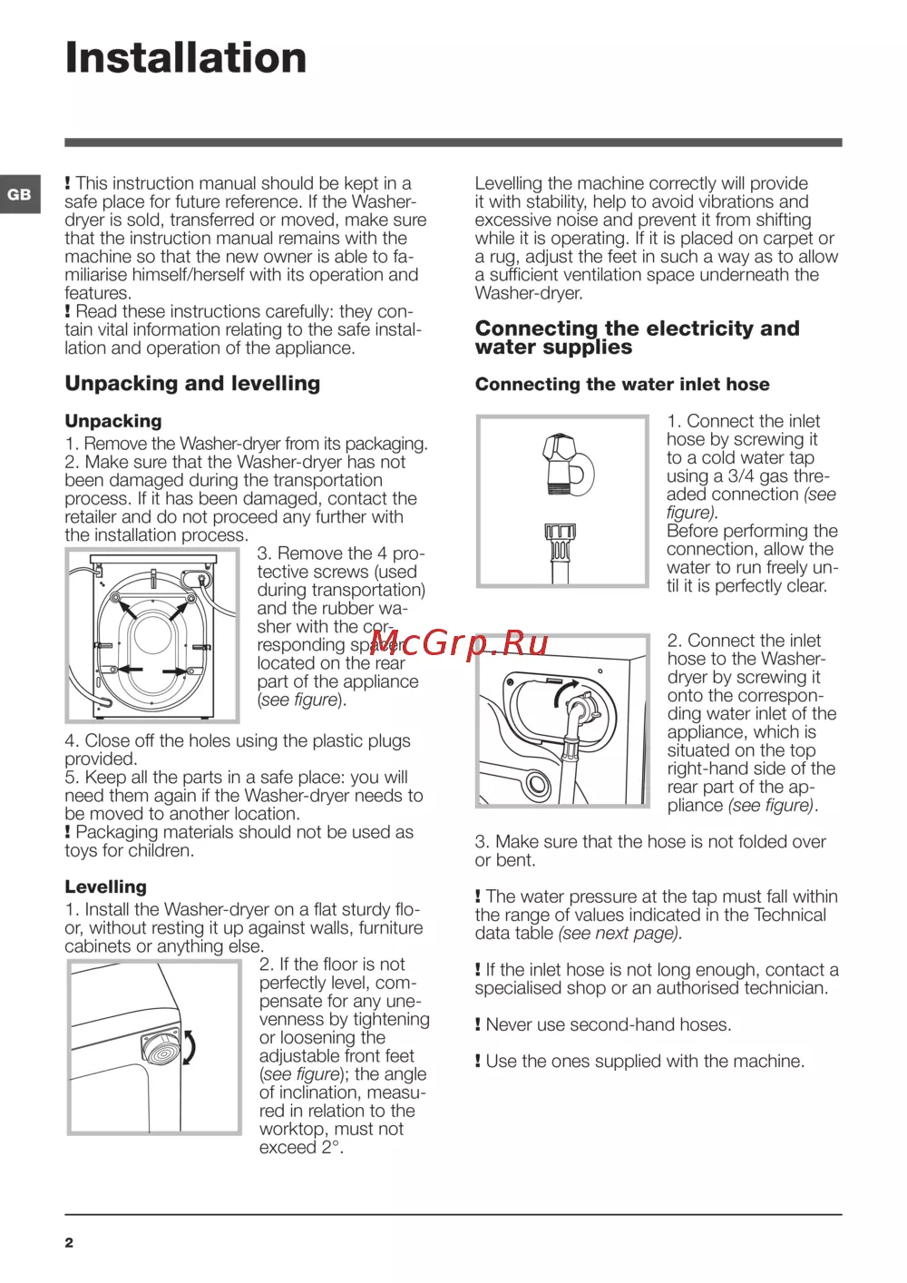 Indesit XWDA 751680X W [2/72] Unpacking and levelling