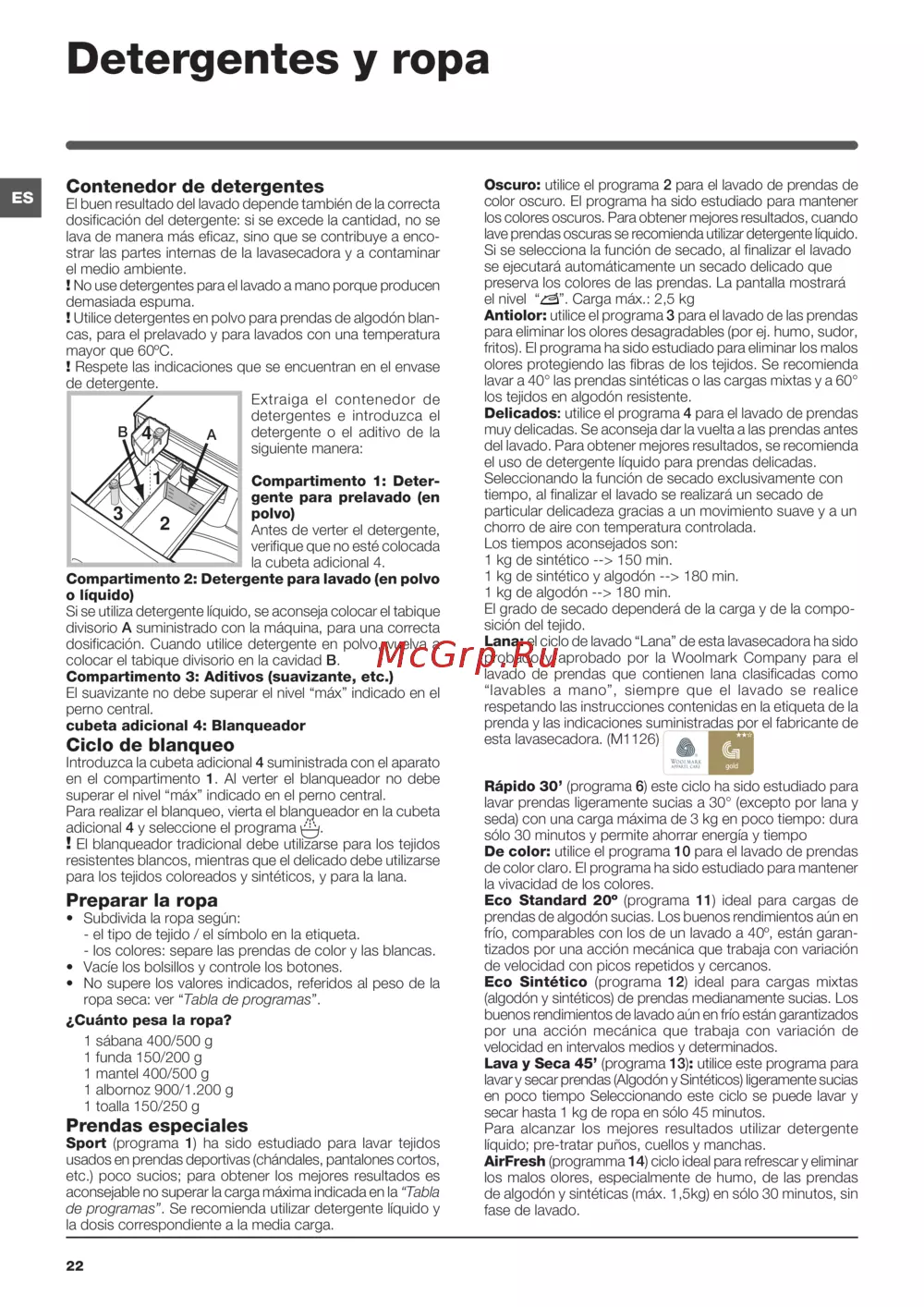 (algodón y sintéticos) de prendas medianamente sucias. Los