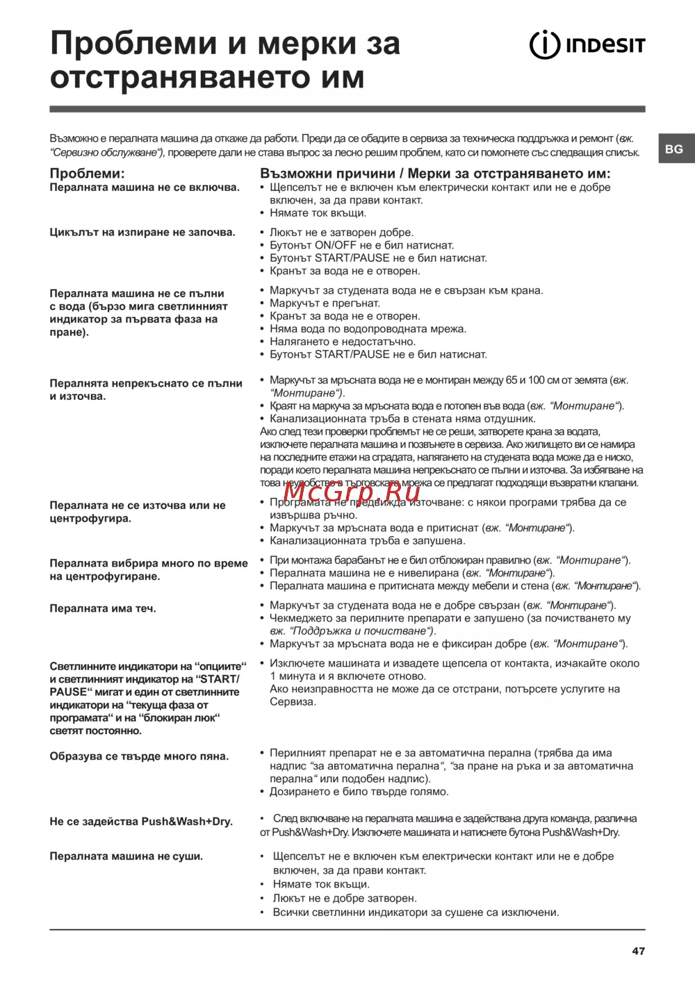 Âúçìîæíî å ïåðàëíàòà ìàøèíà äà îòêàæå äà ðàáîòè. Ïðåäè äà ñå îáàäèòå â ñåðâèçà çà òåõíè÷åñêà ïîääðúæêà è ðåìîíò (âæ.