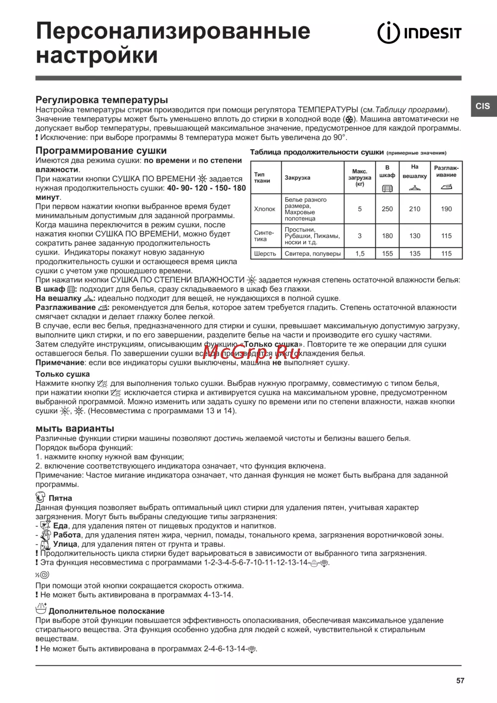 ! Продолжительность цикла стирки будет варьироваться в зависимости от выбранного типа загрязнения.