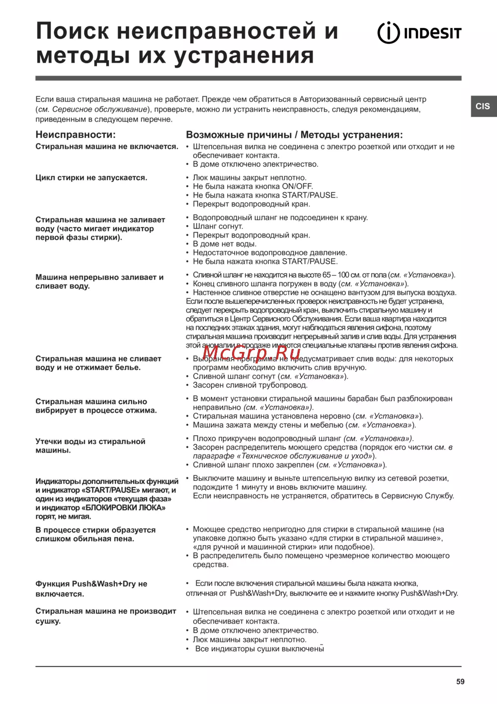 Indesit XWDA 751680X W [59/72] Поиск неисправностей и методы их устранения