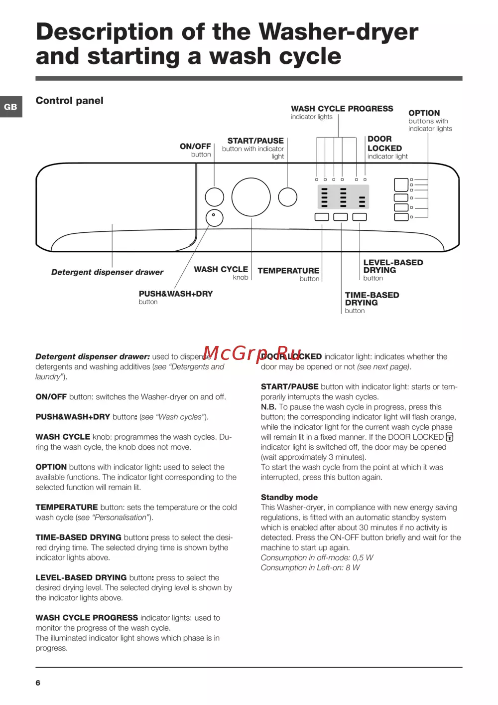 - How does it work 1 load the laundry cotton and or synthetic garments and close the door 2 pour the detergent and or additives 3 start the cycle by pressing and holding the push wash dry button for 2 seconds the relevant indicator light will turn green and the door will lock the door locked symbol is lit nb starting the cycle through the push wash dry button activates an automatic non customisable wash and drying cycle recommended for cotton and synthetic fabrics 4 the automatic cycle can be used only for washing excluding the drying phase press the push wash dry button and then the drying button the drying icon of the level will switch off maximum load for washing only is 3 5 kg cycle p.8