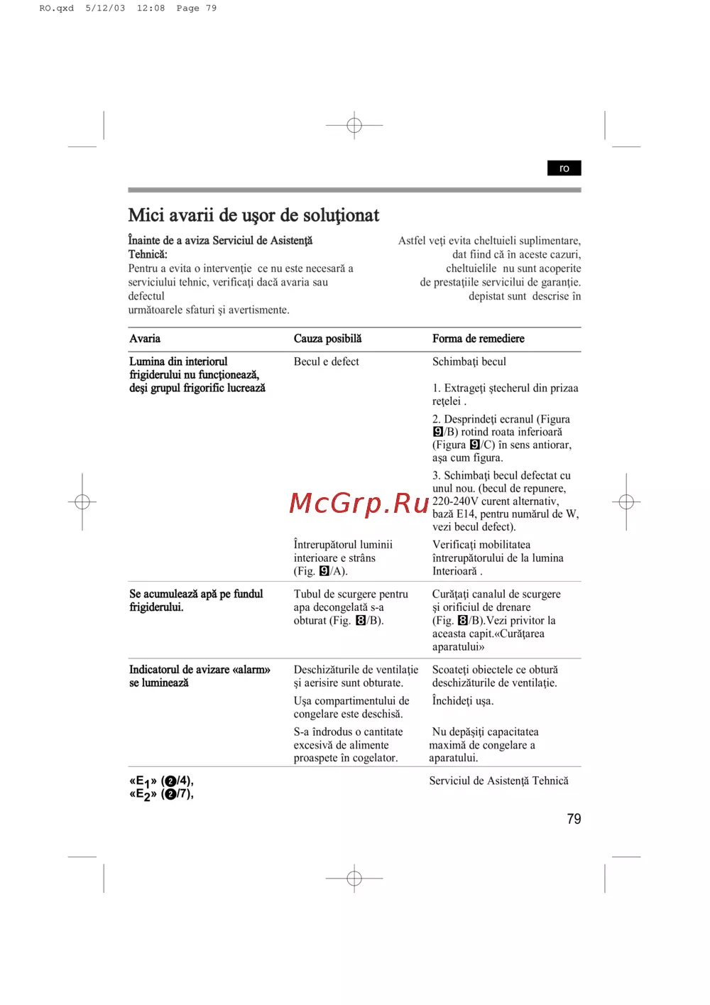 serviciului tehnic, verificaþi dacã avaria sau de prestaþiile servicilui de garanþie.
