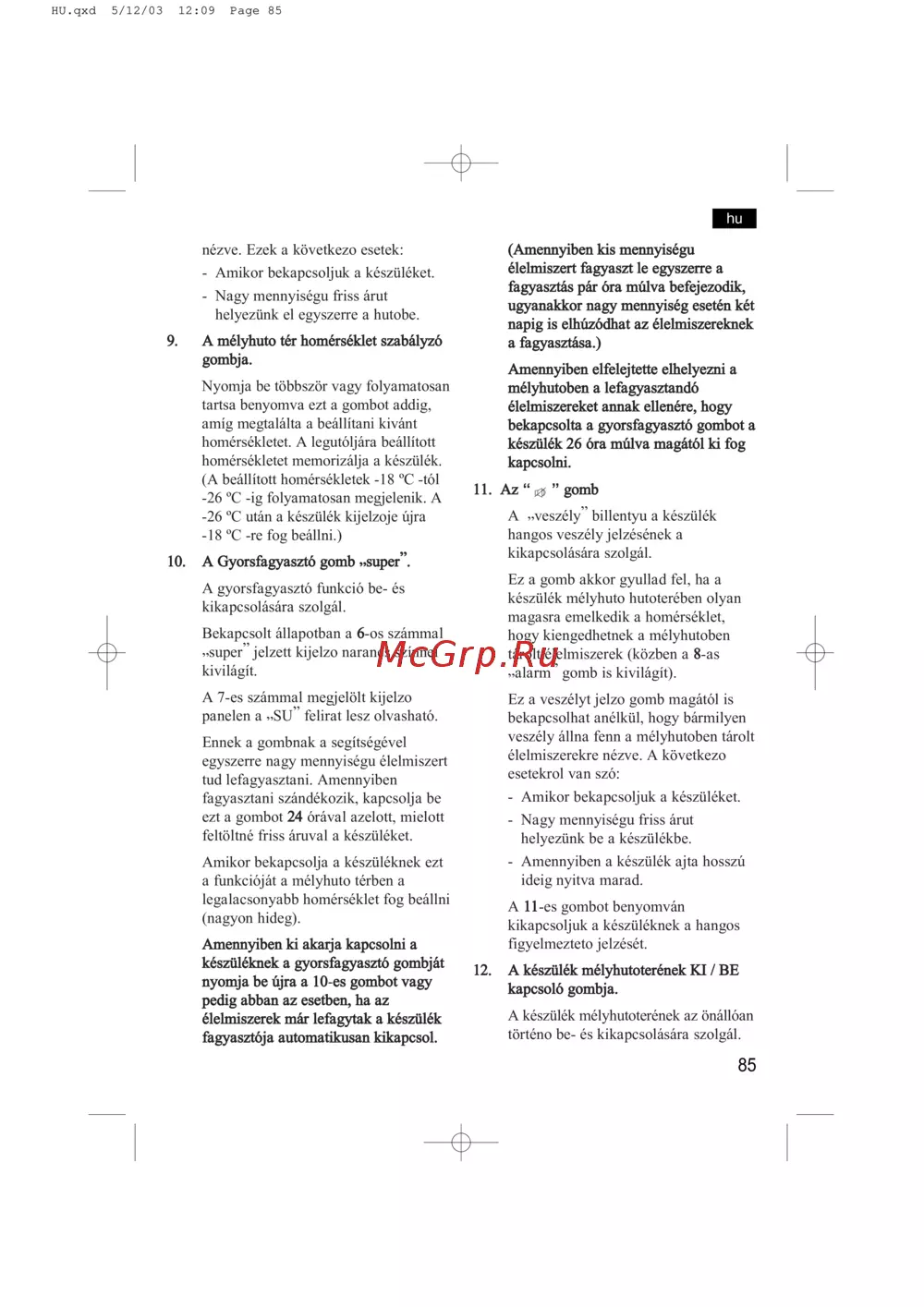 - Aa hûtõgép kikapc solása és üzemen kívül helyezése p.88