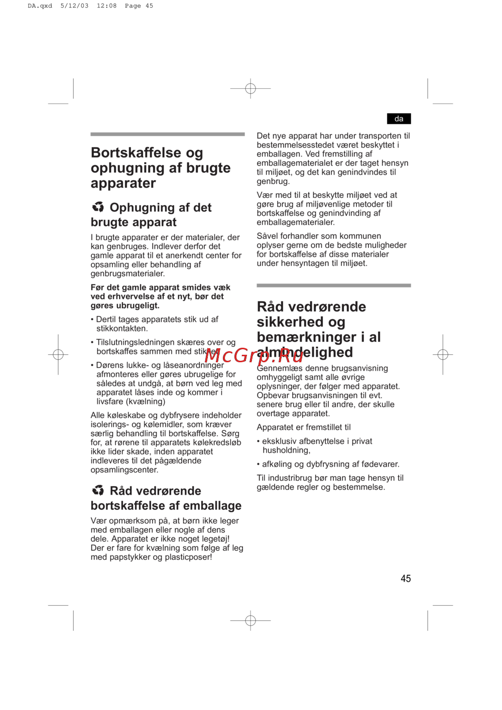 Siemens KG36P370 [45/107] Råd vedrørende sikkerhed og bemærkninger i al almindelighed