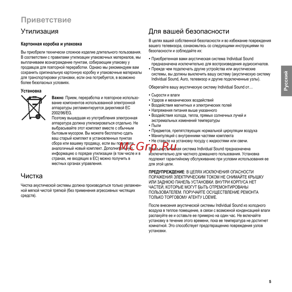 Loewe Individual Stand Speaker 66202U00 White — правила утилизации и безопасного использования акустических систем [5/14]