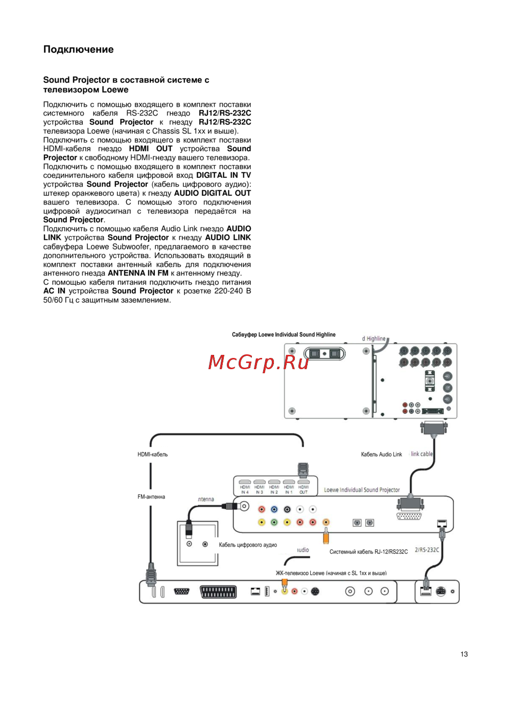 - Подключение телевизоров loewe без системного интерфейса rj 12 rs 232c p.15