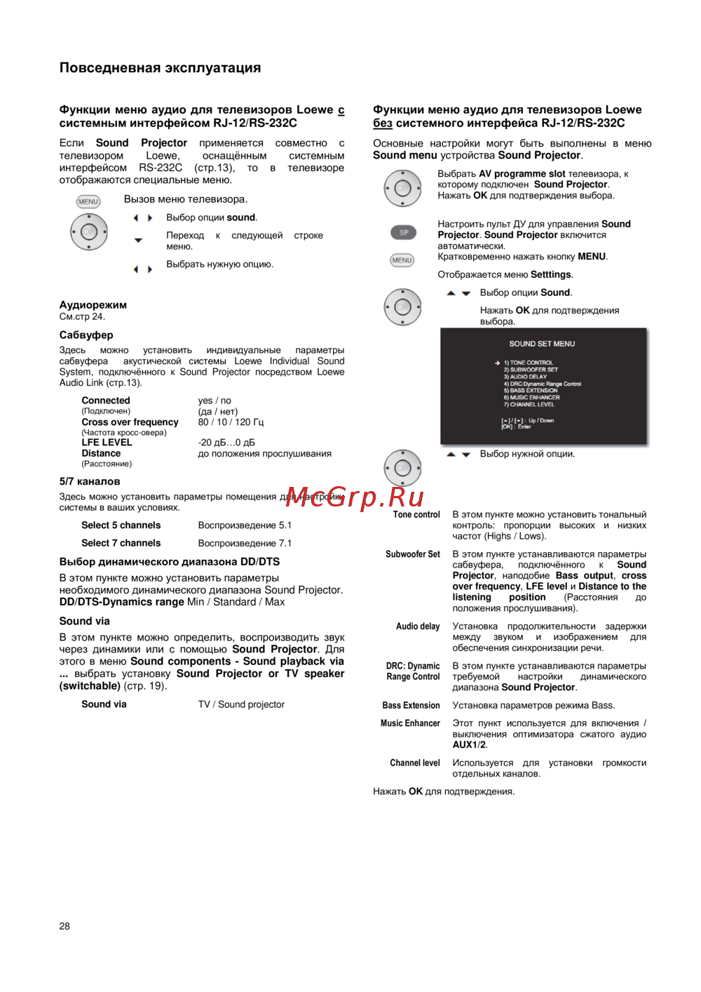 - Функции меню аудио для телевизоров loewe с системным интерфейсом rj 12 rs 232c p.28