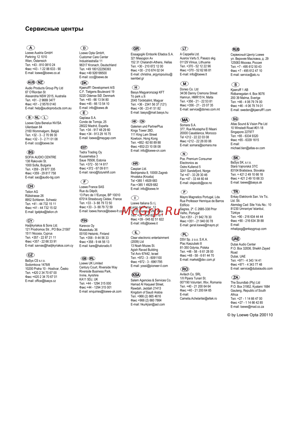 Loewe Sound Projector Individual SL 69205U80 White — контактные данные сервисных центров по всему миру [36/37]