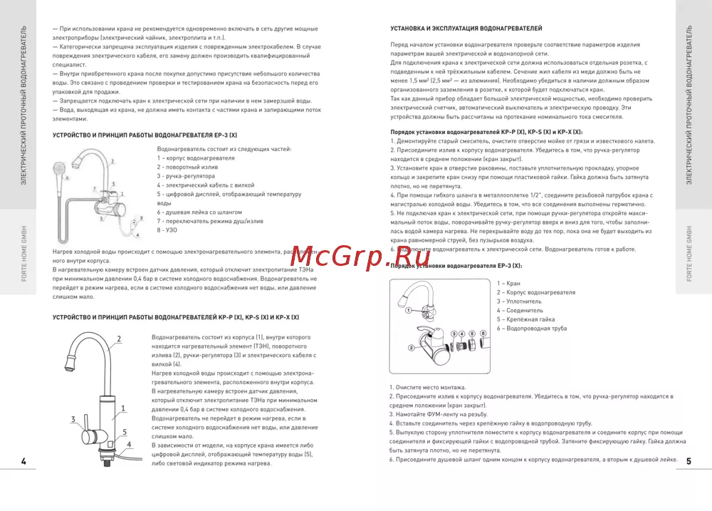 ― Запрещается подключать кран к электрической сети при наличии в нем замерзшей воды.
