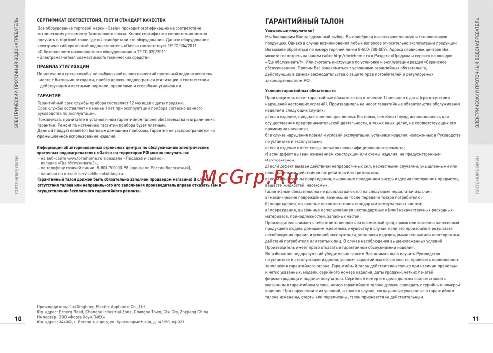 Импортёр: ООО «Форте Хоум ГмбХ»
