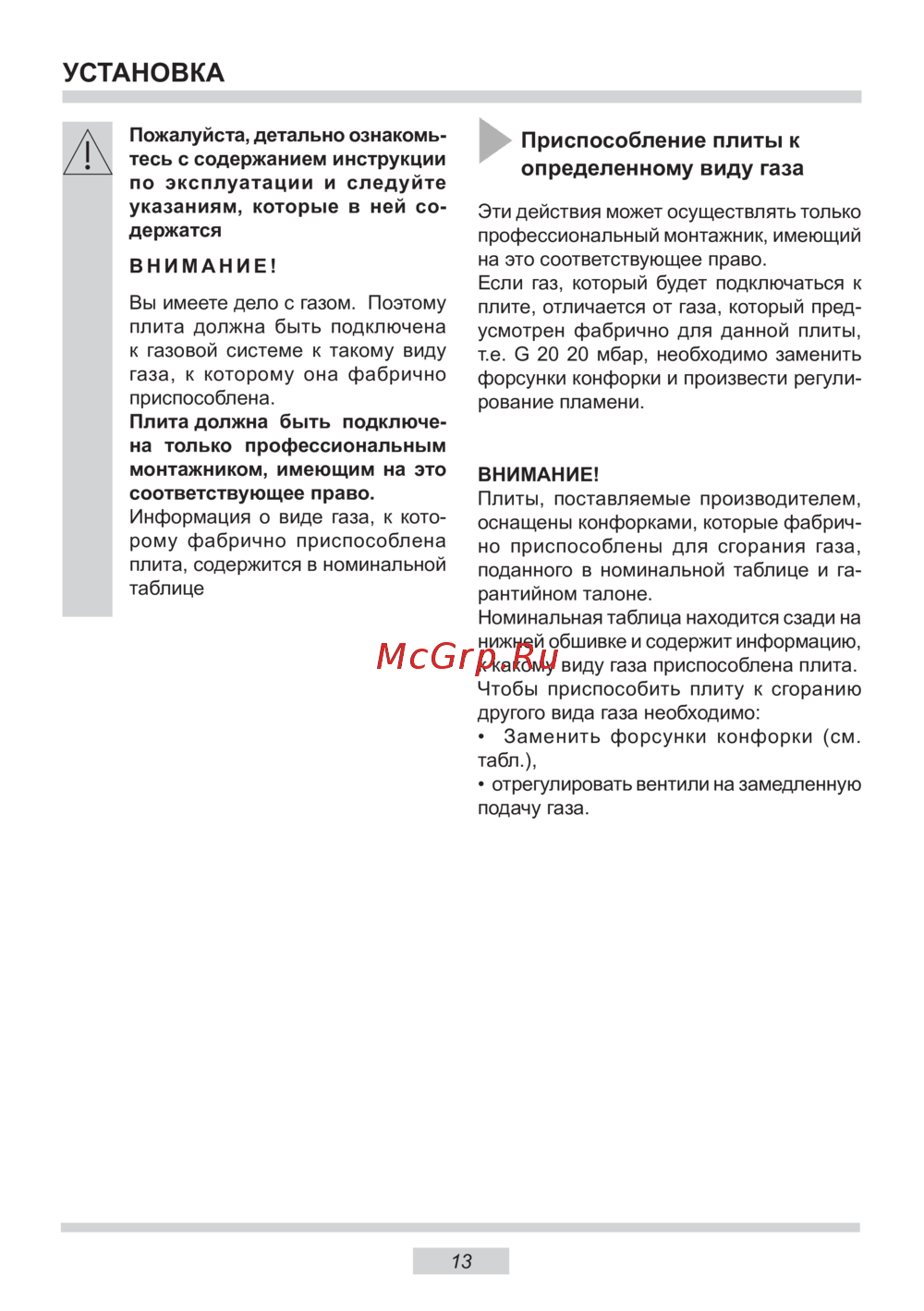 Hansa BHKW 630500 — установка и настройка газовых плит: важные рекомендации [13/64]