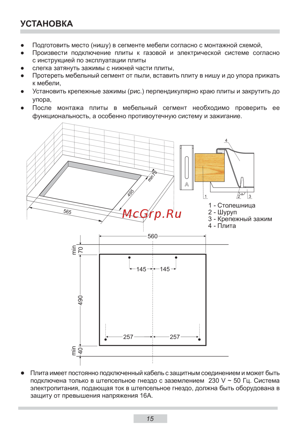 ● Плита имеет постоянно подключенный кабель с защитным соединением и может быть