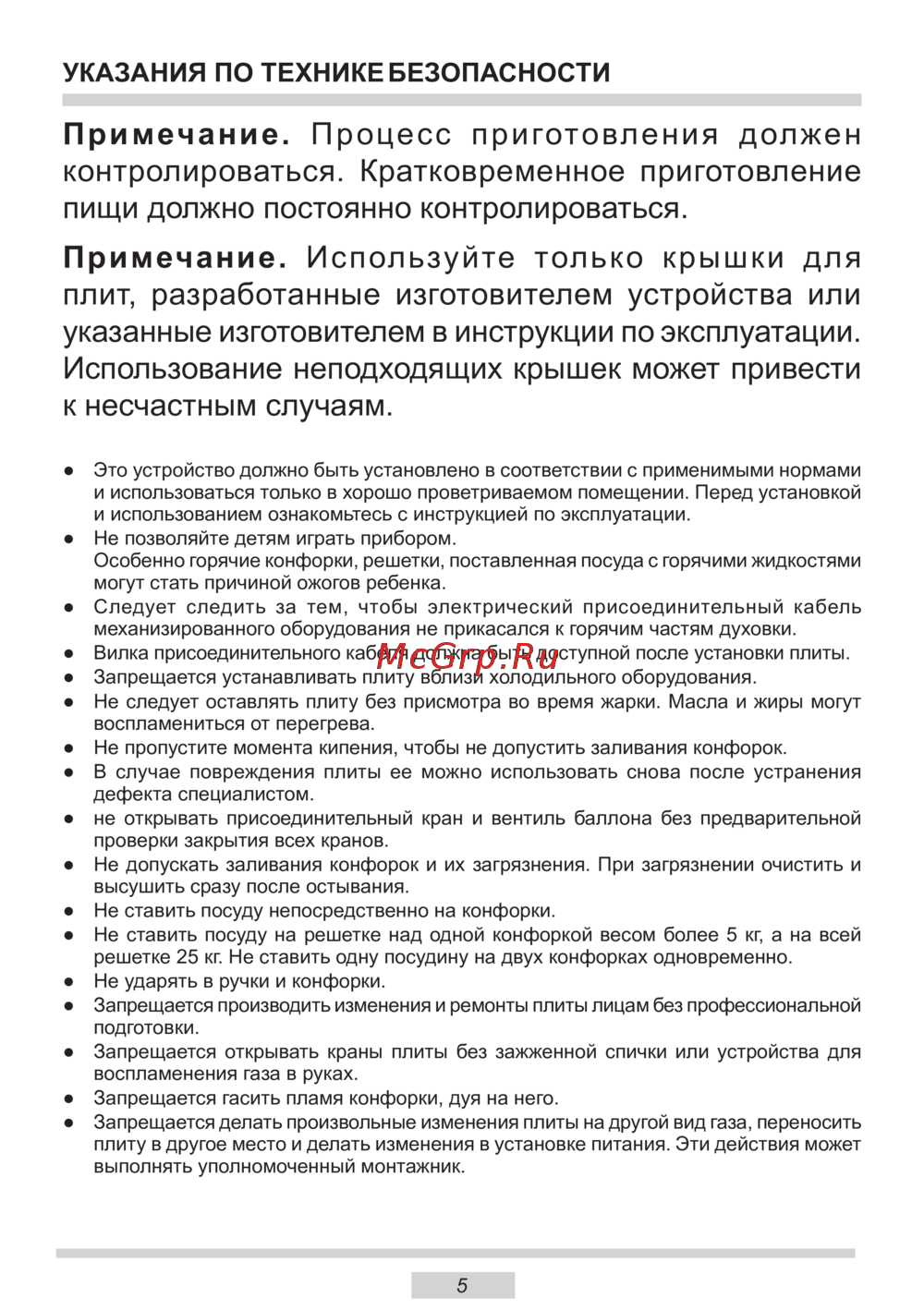 - Примечание процесс приготовления должен контролироваться кратковременное приготовление пищи должно постоянно контролироваться p.5