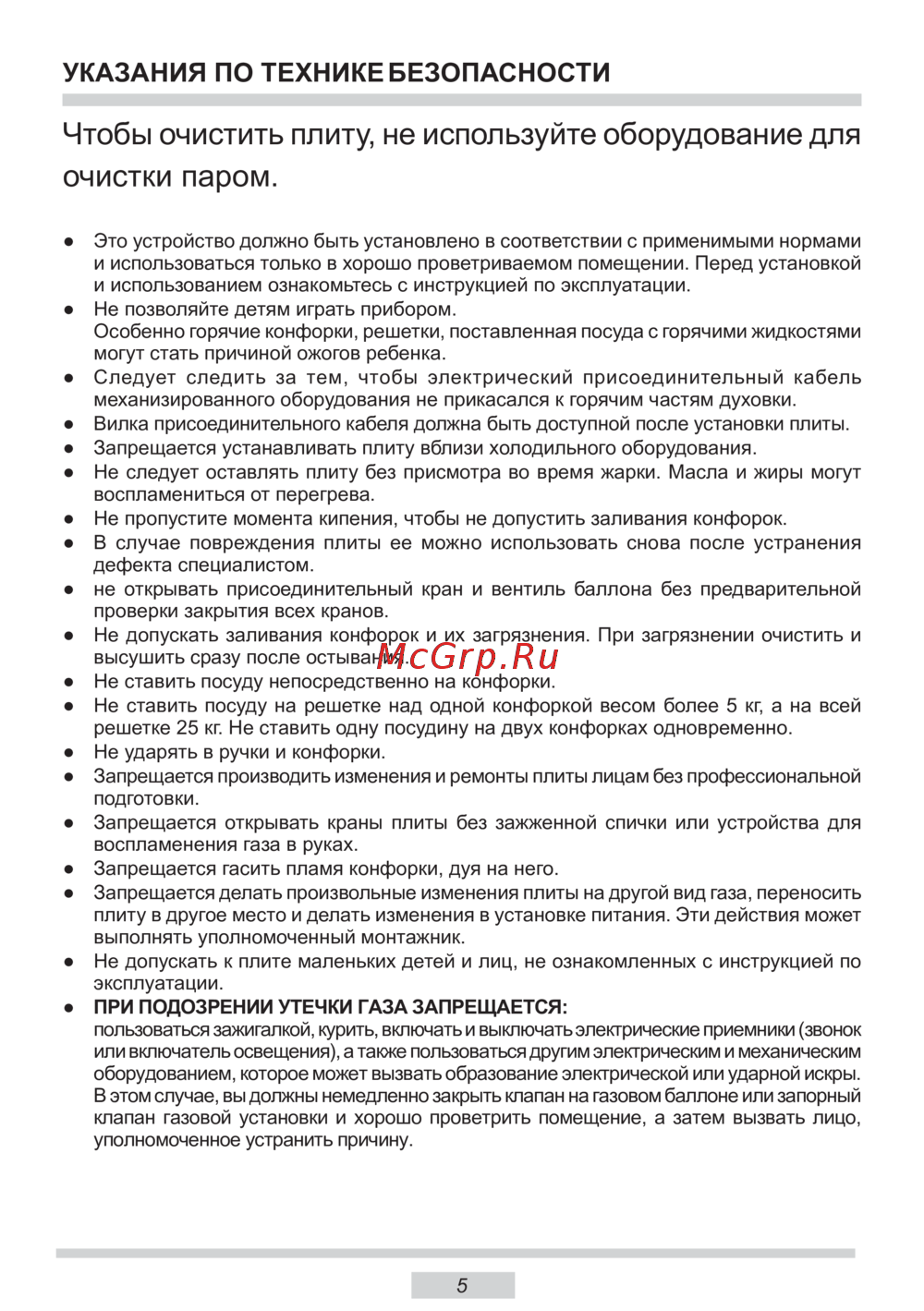 - Чтобы очистить плиту не используйте оборудование для очистки паром p.5